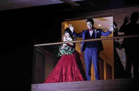 みんなが楽しめて笑いのある式にしようと思い、ゲストと一緒に行うことができる演出を考えました。ガーデンイベントではバルーンリリースをしたり、お色直し入場ではドレス当てクイズをしたりしました。他にも、ビンゴ大会などゲストに楽しんでもらえる結婚式となりました。