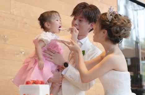 結婚式では定番のファーストバイトを娘と一緒に行いました♪結婚式をすると決定した日からファーストバイトは娘も参加させたい!と思っており、当日プランナーさんにお願いし一緒にケーキを食べることができました。娘も大きなケーキを目の前にしとっても喜んでくれました♪ ケーキデザインもプランナーさんと当日までお打合せを行い自分たちの理想のデザインでケーキ入刀などを行えました。