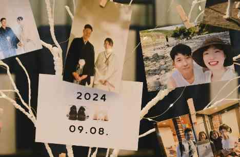 お打合せはオンラインもしくは直接お会いしてでのお打合せと選択できましたので仕事終わりに時間を合わせて打合せをすることができました。ウェルカムスペースに何を飾ろうかとても悩みましたが、お持ち込みが自由な会場なので自分たちが好きなものをたくさん取り入れ、お気に入りのウェルカムスペースをお客様へお見せすることができました。