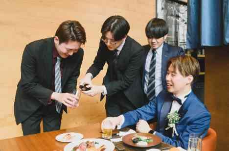披露宴では参列してくださるゲスト全員が楽しんで頂けるようなことをしたく二人で進行を考えました。結婚式では王道のケーキ入刀はしたいなと思っていて自分たちがやりたいケーキでデザインがあってそれにも快く答えて頂きました。ケーキをお披露目した際は、みなさんから「かわいい」や「すごっ!」といったお褒めのお言葉を頂けて、ケーキのデザインにもこだわってよかったと思いました。