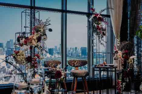 ゲストにご満足いただきたいという想いに加え、ゲストとのコミュニケーションの時間を沢山取り感謝も伝えたいと考えていらっしゃったおふたり。ゲストと近い距離で自然体で話せるよう、Loftの特徴でもあるBar「86」にてスイーツブッフェを行いました。大人心をくすぐる、人気のお酒から普段はなかなか手に入らないお酒がずらりと並ぶお洒落な空間で、都心を一望しながらスイーツ片手に新郎新婦と沢山の会話を重ねました。