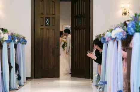 挙式はどうしても厳粛になりやすい。でも挙式スタイルを変え、おふたりの思い出の音楽を生演奏し、ご友人のお子様にドライブリングガールをお願いし、カジュアルな雰囲気へ。クライマックスの誓いのキスは敢えてせず、ご退場されてからのクロージングキスで、「やっぱりすんのかーい!」と笑いを取り入れました♪