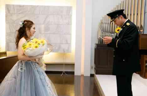 新婦様が大好きなひまわりの花束をご用意された新郎様。 新婦様へ日頃伝えることが出来ていなかった感謝の気持ちを込めて、改めてプロポーズ… チャペルでのお式はあたたかいゲスト皆様がお見守りいただくもと行い、もちろん素敵でしたが お2人だけの思い出の残していただきました♡*