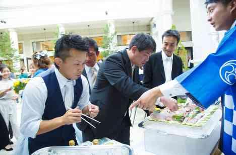 アイネスヴィラノッツェ大阪自慢のデザートビュッフェをお楽しみいただきながら、お2人ならではの「大分のぶり」を使用したお祝いコーナーも設置! シェフが新郎様や新郎様のお父様とお打ち合わせを重ね、当日は親族様からご友人様にお喜びいただくことが出来ました♪♪