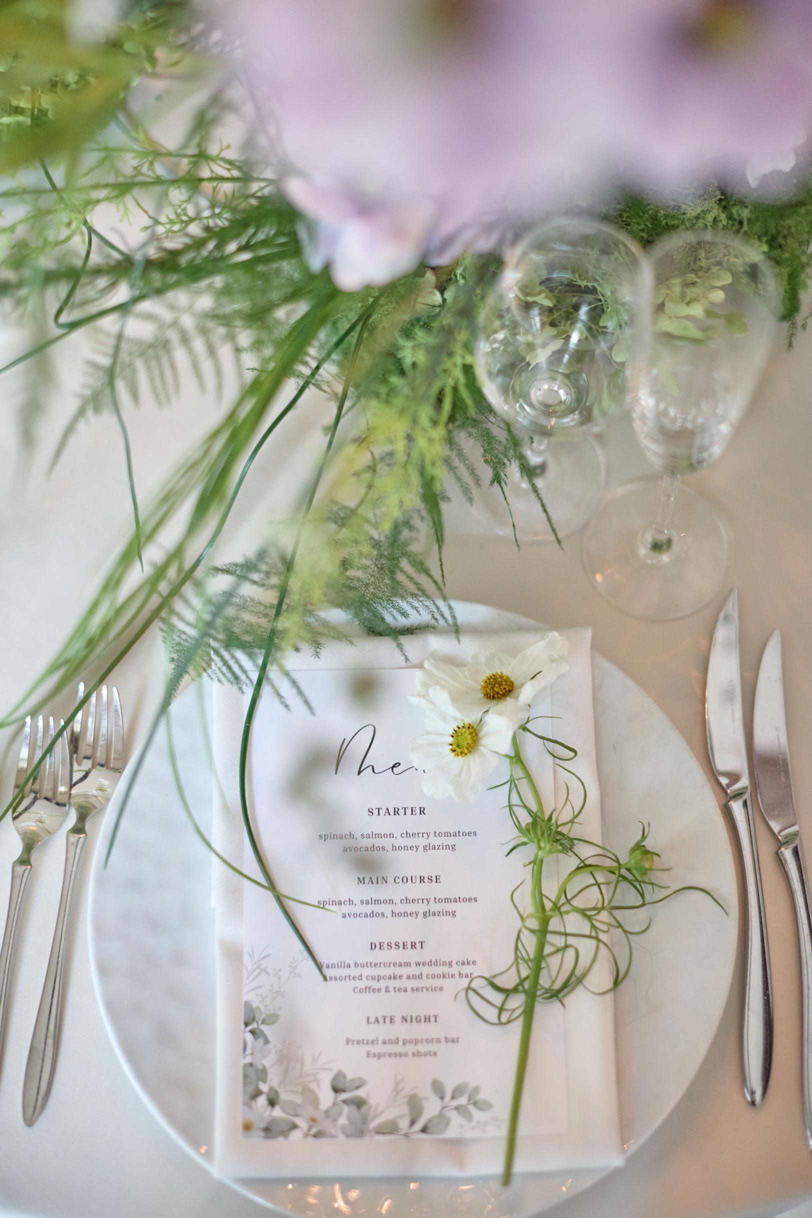 招待状にアレルギー、食事制限などに関する質問状を添え、一人ひとりに合わせた料理を用意。メインのお肉料理はお好みの焼き加減を当日ゲストにお伺い。皆様が安心して楽しめる料理をご提供します