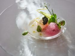 産地に足を運び選んだこだわりの食材で、食べる瞬間に一番美味しくなるよう考えつくした、料理のための演出を追求しています。おふたりに縁のある食材を使用したオリジナルメニューも可能です。お気軽にご相談を。 愛知県出身。代官山ASOチェレステを起点に、ひらまつのフランス料理・イタリア料理各店を経て、ル・ミディひらまつのシェフに就任。五味五感を刺激する印象的な一皿を創り上げる。