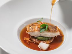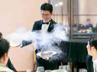料理が演出に。ゲストの目の前で仕上げる演出料理は、ル・ミディひらまつの名物です。『驚きと感動』で幸せなひと時を。 -