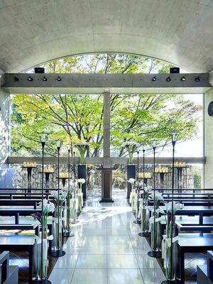 | 挙式スタイル | コンクリートの直線と曲線が織りなす【 デザイナーズチャペル 】。 枝ぶりが見事な【 シンボルツリー 】と大きなコンクリートクロスの前で誓いのひと時を… --------------------- キリスト教式/人前式 / 着席80名 生演奏アンサンブル付(クラッシック/ジャズ) --------------------- 世界にここにしかない【 ガラスの空中回廊 】。 挙式のプロローグを感動的に彩る【 ヴァージンブリッジ 】からの入場をぜひご体感ください。 |