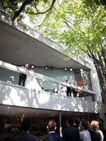 コンクリートと緑のコントラストはチャペルのみならず館内のいたるところに息づいている。自然との融合がテーマに建てられた、安藤忠雄氏の作品に、訪れたゲストも「こんな結婚式、はじめて!」と喜んでもらえる。そんな参列してくれたゲストとともに一生の記念となる集合写真撮影も楽しめる