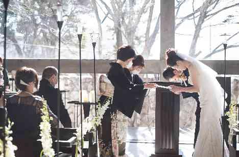 樹齢120年を超えるシンボルツリーの欅の木の枝が美しい冬のセレモニー。ドレスサロンから選び抜いた運命のウエディングドレスに身を纏った新婦様は、いつも以上に美しい姿に。凛とした雰囲気の中で、人前式ならではの温かなワンシーンも。大切なご家族やご友人をはじめとするゲストの皆様に見守られながら、めでたくご夫婦としての契りを交わされました。