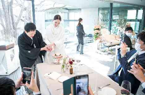アフターセレモニーでは、丑年にちなんで牛のぬいぐるみトスを。ゲストそれぞれに思い出の写真を配られ、記念写真なども多く時間を設けて、賑やかな時間を過ごされました。ご披露宴のお色直し入場ではこもだる開きをして、中からお菓子が出てくるサプライズを。あたりの方にはお年玉のプレゼントなどオリジナルの演出でゲストも大盛り上がりとなりました。