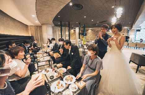 お色直し前にはゲストに会場を移動していただき、おふたりからのデザートビュッフェでおもてなし。たくさんのプレゼントBOXもご用意され、ご自身の運に任せて選んでいただくユニークなおもてなしを。そしてお色直し入場は階段から!また、スタッフも当日はクルーとなり、お揃いのマスクやそれぞれのコスチュームで一緒に楽しませていただきました。こだわりたっぷり、愛情たっぷりな一日にゲストの皆さまも大盛り上がりでした。
