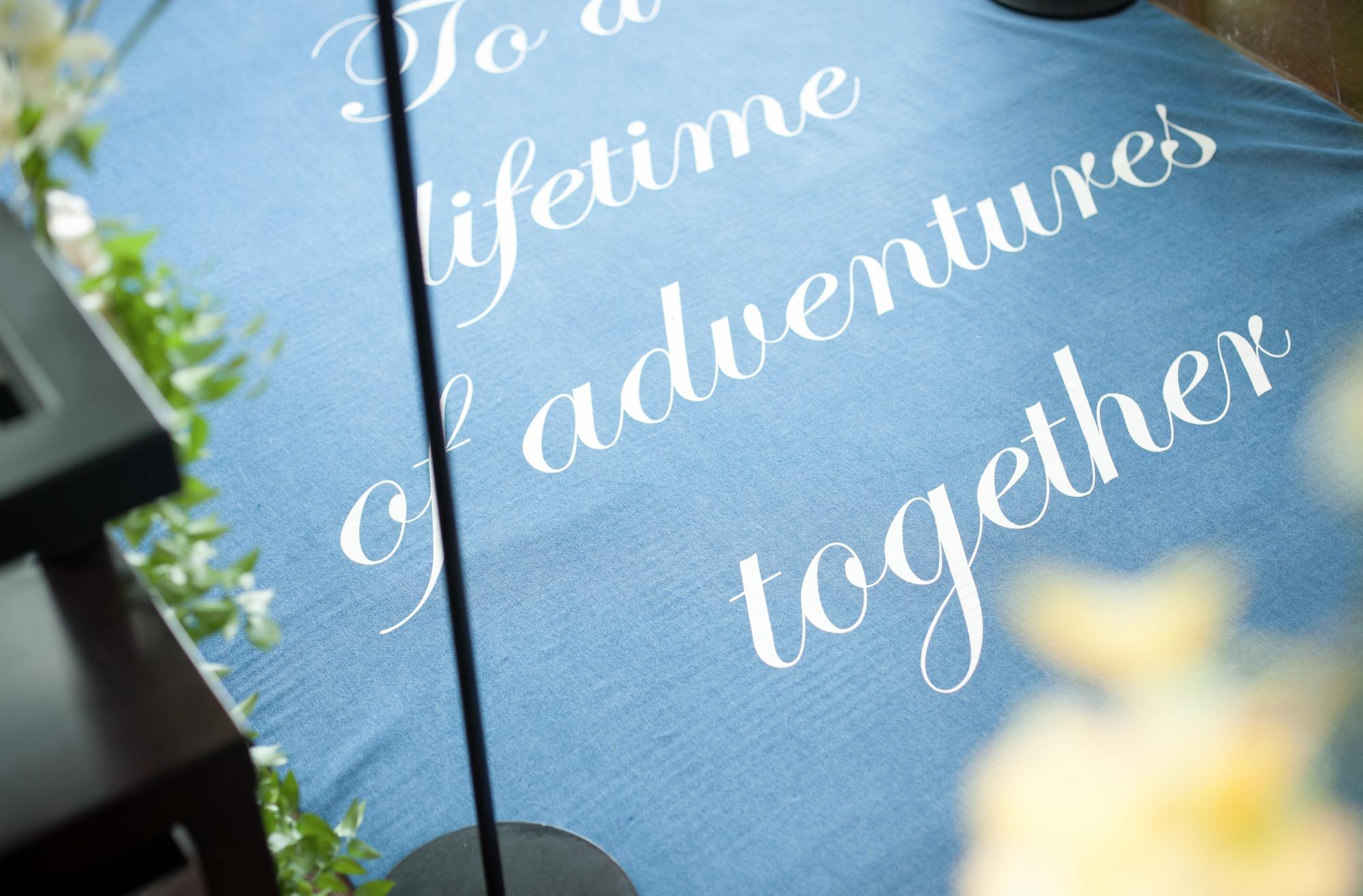 ファッション関係の仕事に就かれているおふたりに合わせて、当日はデニム生地のバージンロードをご提案。おふたりのイニシャルと日付が入ったシンプルなデザインが、シックで大人っぽくセレモニースペースを彩りました。新婦様の姪がリングサポートとして一緒にバージンロードを歩く微笑ましい姿に、会場は優しい笑顔に包まれました。
