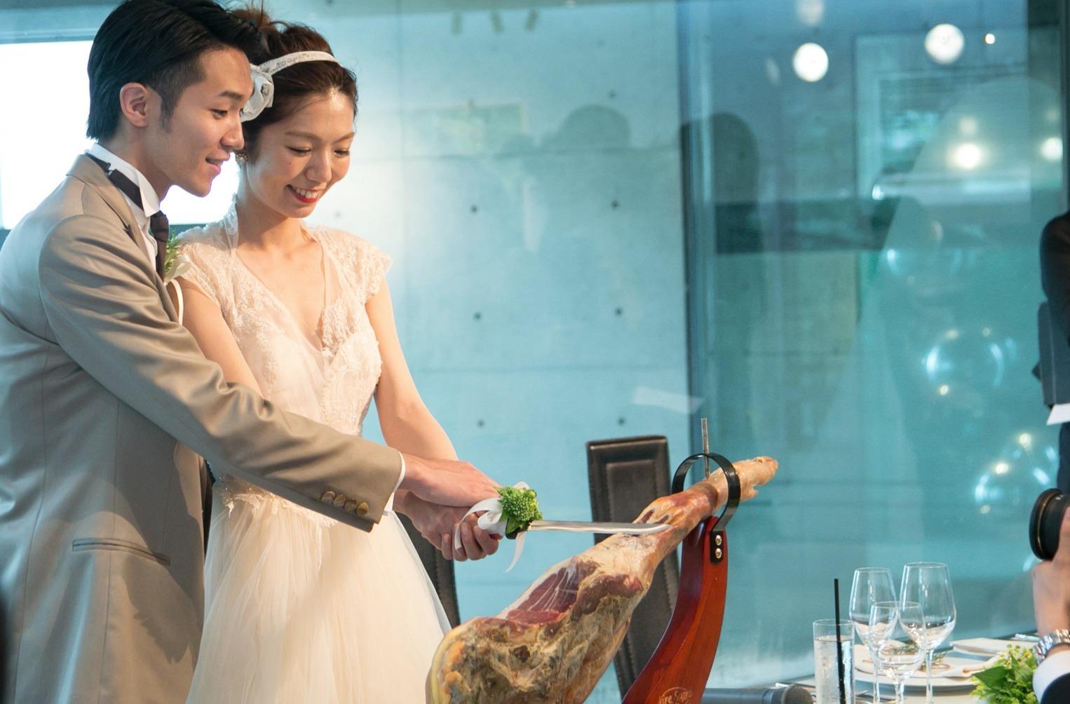 ケーキの代わりに生ハム入刀&バイト