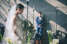 おふたりのテーマは海外で人気の「ラスティックグリーン」。 ”ラスティックウエディング”とは自然を活かした、プレーンで飾り気のない、ぬくもりのある結婚式のこと。 そんなおふたりの目に留まったのが、ザ・ヒルサイド神戸のコンクリート造りのチャペル。 純白でもなく、森の中のような雰囲気のナチュラルな空間でもない、シンプルシックなチャペルを気に入ってくださいました。