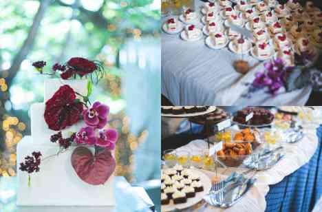 ゲストが会場を自由に行き来しやすいよう、1階のラウンジにデザートビュッフェをご用意。一棟まるごと貸切ってご利用いただけるため、会場の作りを生かしたゲスト参加型の演出を随所に盛り込まれました。お色直し入場では、新婦様はブラックのカラードレスにお召替え。クラシックな印象もただようカラードレスは洗練を極め、新婦様の美しさをより一層際立たせました。