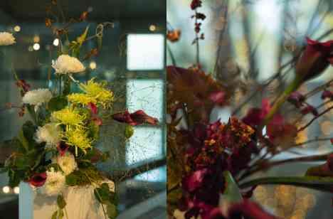 披露宴会場を彩ったのは、「和と美術と花」をテーマにした装花コーディネート。おふたりの世界観を空間全体で表現されました。和の要素をさりげなく取り入れながらも、色味や素材感、配置のバランスに至るまで細やかにこだわり、ゲストが席に着いた瞬間から目に映るすべてが、感性を満たす空間へと仕上がりました。「この世界観を体感してほしい」というおふたりの想いが、自然と伝わるコーディネートとなりました。