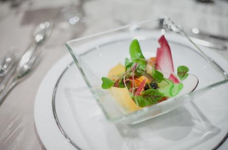 新郎さまのご出身が宮崎県とのことで、オードブルには「空飛ぶ新玉ネギ」を使ったムースや、スープには「黒皮かぼちゃ」のポタージュなど、宮崎県産の食材を使った料理をご提案しました。また、デザートにはおふたりがお住まいの福岡県名産品のひとつである日本茶「八女茶」を取り入れるなど、縁の深い食材をふんだんに取り入れられたおふたり。ゲストの方々に感謝の気持ちが伝わるようにと、細部にまでこだわられました。