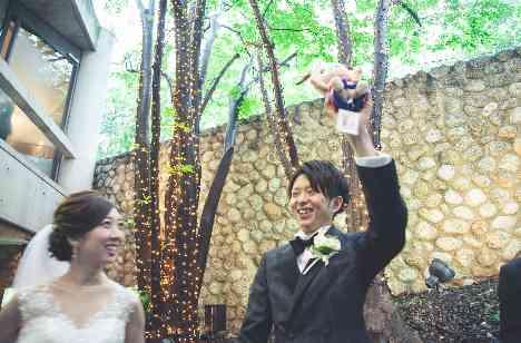 ゲスト参加型の結婚式というこだわりから、おふたりが選ばれたのは人前式。おふたりのキューピッド役となったゲストやご親族が演出をお手伝いされるなど、大切な方々との絆が伝わる挙式となりました。親御さまよりおふたりに言葉を投げかける形で行われた誓いは、参列された方々の深い感動を呼ぶことに。 挙式後に行われたブーケならぬ“ぬいぐるみトス”は、男女問わずの全員参加型。ワイワイと大変な盛り上がりをみせました。