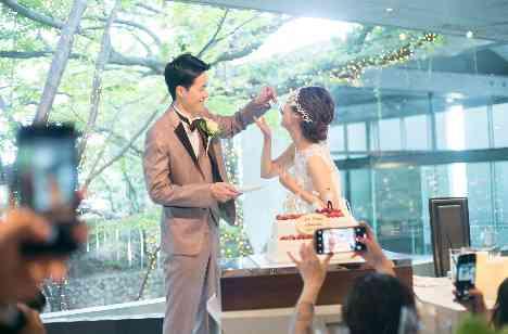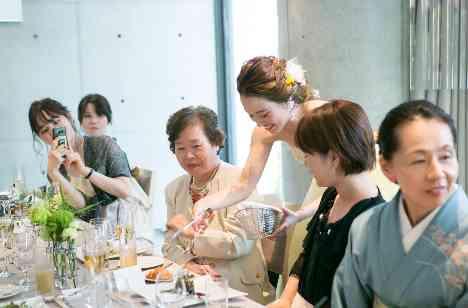 ご家族への感謝を伝えたいというお気持ちから、ご家族に登場していただく演出もありました。ケーキ演出ではご両家の親御さまによるお手本バイトも。学生時代からの長いおつきあいのおふたりでしたので親御さま同士も仲がよく、大変楽しいひと時となりました。さらに中座のエスコート役にもそれぞれごきょうだいをご指名され、仲睦まじい様子を見せてくださいました。