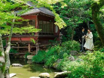 - 文化財である当館の敷地内には、和装が映える名勝庭園や大正建築の趣が残る非日常空間が広がります。式場見学では、人気の和婚式や神社式のご紹介もいたします。おふたりに代わり、神社の空き状況のお調べから挙式スケジュールまでご案内いたしますので、明確にイメージが湧いていない方もまずはお気軽にご相談ください。