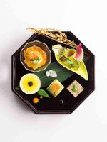 神戸迎賓館の料理を監修するのは、NYのレストランガイ ド「ザガットサーベイ」で4年連続神戸エリア1位に輝いたシェフ。全国からファンがやまない人気レストランとしても知られる同館ならではの、美食でゲストをもてなして。また幅広い年齢層にあわせた和洋折衷メニューやアレンジ、一口サイズの食材カットにも対応。