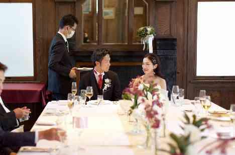 会場は、レストランでもご利用いただいている、ご会食専用個室「VIP ROOM」にて。 ご会食ではゲストの皆様と、旧西尾邸自慢の料理をお楽しみいただきながら、ご歓談中心の和やかな時間を過ごされました。 新郎謝辞では、ゲストの方々にひとりひとりへ感謝の言葉を述べられ、感動の渦に。 「感謝の気持ちを伝えたい」と結婚式をすることを決めて下さったおふたりだからこその、温かな空間となりました。