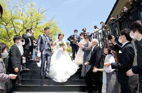 和やかな雰囲気のなかで執り行われた挙式。純白のウエディングドレスに身をまとった新婦様の美しさに、ゲストの皆様は感激されているご様子でした。ほど良い緊張感がありながらも、リラックスした表情で永遠の愛を誓われた新郎様新婦様。アフターセレモニーでは、神戸迎賓館と青空をバックに、最高のロケーションで記念写真を撮影。ゲストとの時間をおおいに楽しまれたおふたりでした。