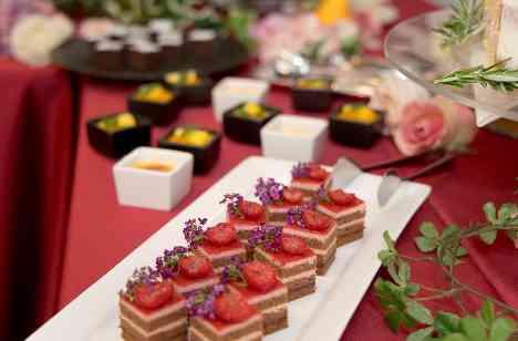 ゲストとの思い出をお写真にたくさん残したいと考えられていたおふたり。歓談のお時間やフリーフォトタイムを設けられました。また、館内のステンドグラスの前にデザートビュッフェをご用意。目でも舌でもお楽しみいただける、神戸迎賓館ならではのフォトジェニックなおもてなしとなりました。デザートはもちろんお料理にもこだわられ、色とりどりのお料理とデザートが、おふたりの大切な一日を華やかに彩りました。