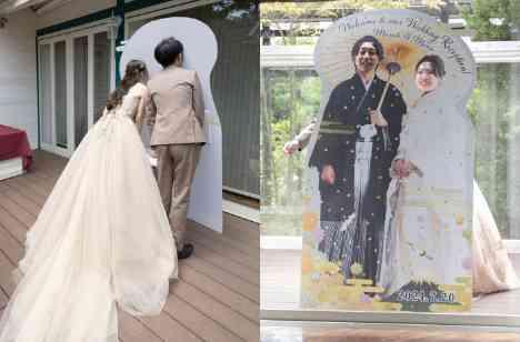 お色直し入場の際には、カラードレスの色当てクイズをされました。はじめて目にする新婦様のカラードレス姿に、新郎様は幸せを噛み締めているご様子でした。和装姿の顔出しパネルから顔を覗かせるユーモアたっぷりの入場シーンに、ゲストも大盛り上がりでした。ご家族やゲストおひとりおひとりに伝えられた、日頃の感謝の想い。ゲストと心が通じ合った、かけがえのないひとときを過ごされました。