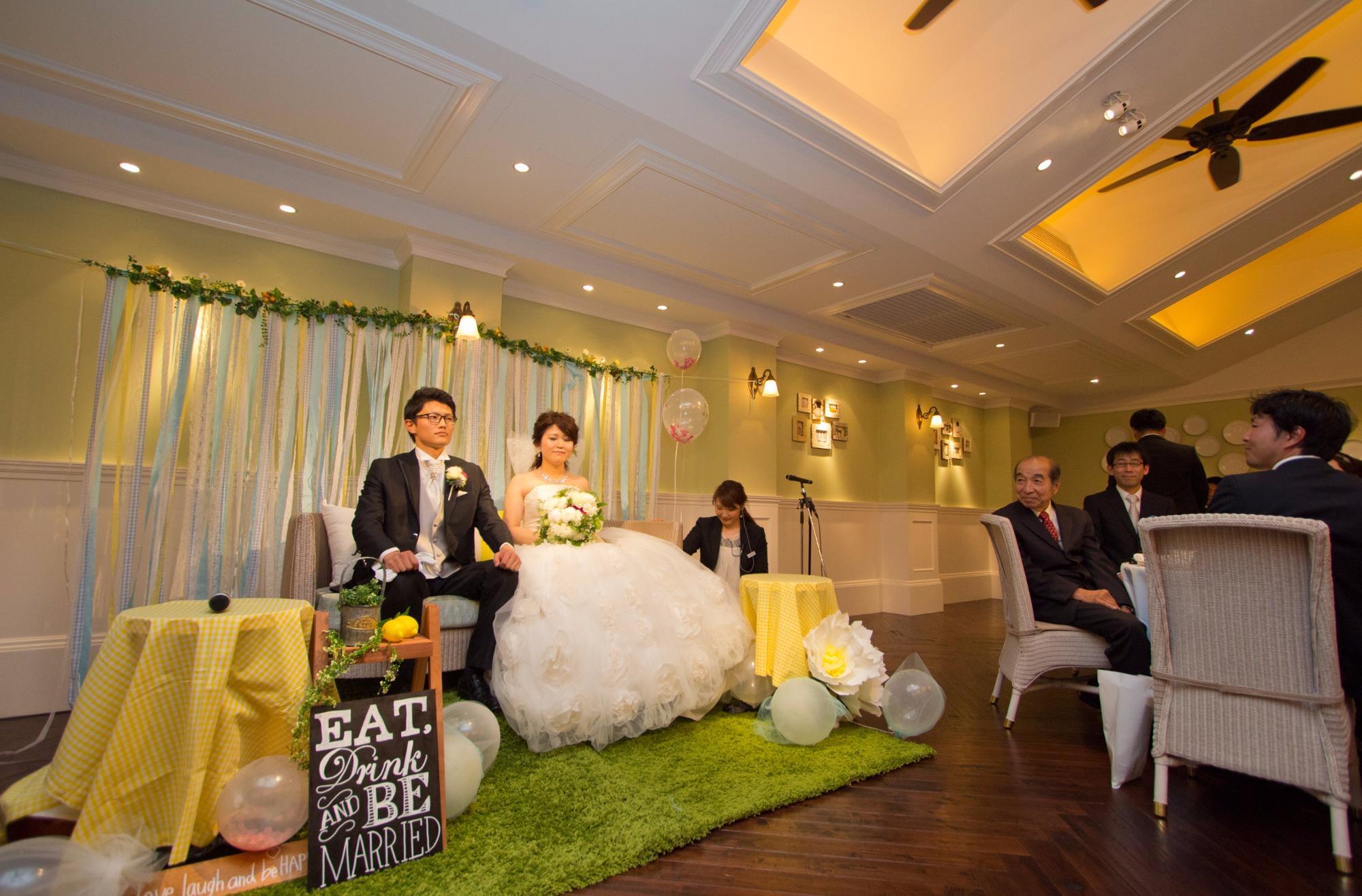 「ガーデンで挙式演出を!」「イエロー、空色、グリーン、差し色に赤が好き」等、ご結婚式にはとっても前向きな新婦様。料理にこだわりたい新郎様。お話を伺う中で、おふたりのテーマが見えてきました。都会的でオシャレな新婦様、実はご結婚後は新郎様のご実家で農家のお手伝いをされることや、共通の趣味が山登りで自然が大好きであることなど。なので、ウエディングテーマは「自然」に決定!