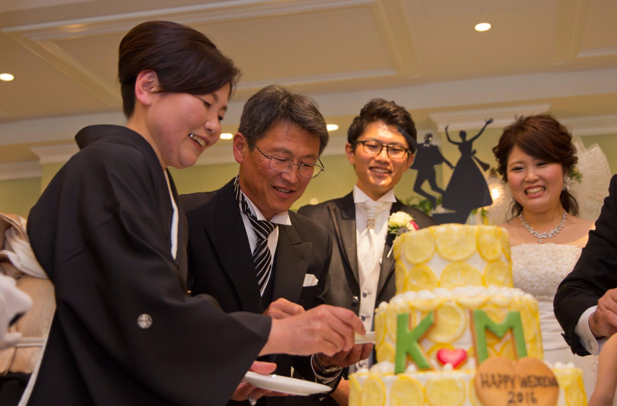 ゲストとの歓談を大切にした演出、デザートビュッフェは会場横のテラスにて。新婦様こだわりのレモンケーキと小松菜のパウンドケーキをおふたりでゲストお一人お一人に取り分け。デザートビュッフェはゲストと1対1でお話ができる貴重な時間です。あえて他の進行を入れず、ゆったり組むのがおすすめ♪新郎ご実家で取れた食材を使った料理やスイーツでのおもてなしは、ウエディングに関わる人全員を優しい気持ちにしてくれます。