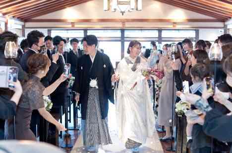 挙式の前には、親御様に晴れ姿をお披露目する『ファミリーミート』が行われました。おふたりの晴れ姿をはじめて目にされ、喜びと感動の表情を浮かべた親御様。これから始まる式に向けて、新郎様新婦様と親御様の心が一つになったひとときでした。おふたりがお選びになった挙式スタイルは、ゲストとの繋がりと和を大切にした『和婚人前式』。ゲストにあたたかく見守っていただきながら、永遠の愛を誓われた新郎様新婦様でした。