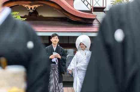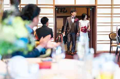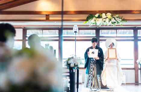 いよいよ迎えられた挙式の時。おふたりがお選びになった挙式スタイルは、大切な人と心を結ぶ“約束式”でした。大切なゲストの前で、おふたりの言葉で夫婦の約束を結ばれ、感動のひとときとなりました。結婚証明書は、ゲストからのお祝いメッセージを収めることのできる『丸窓結婚証明書』をご用意。おふたりのご退場時には、折り鶴と紙風船のシャワーで京都らしく祝福。ゲストと心を交わした、穏やかな約束式となりました。