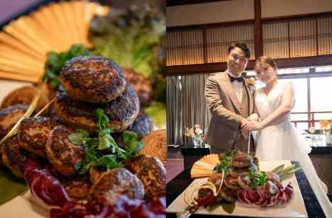 おふたりが入刀されたのはウエディングケーキ、ではなく3段重ねの大きなハンバーグ。 このハンバーグは、鉄板焼き屋を営まれている新郎様のお父様お手製のもの。 親御様の愛情がたっぷりこめられたハンバーグを口いっぱいに頬張り、おふたりで幸せそうな表情を浮かべられていました。 ドリンクは、新郎様がお勤めされているビールメーカーのものをたくさんご用意して、ゲストをおもてなし。