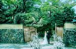 東山を象徴する八坂の塔。その堂々たる姿と四季が織りなす庭 園の風景を、パーティ演出として取り入れられるのがこの会場。パノラマの窓から古都の景色を一望し、遠方ゲストだけでなく、地元京都の人からも喜ばれている。和装はもちろん、ドレスも絵になる空間で至福の一日を過ごして。