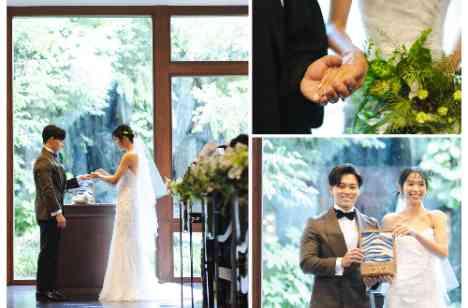 結婚式当日は ゆいさんのお母様手作りのリングピローを おふたりのもとにしっかりと届け大役を務めてくれたずんとくん 愛情たっぷりに育てられているずんとくんとの家族愛を感じる あたたかなおふたりらしい挙式となりました 木のぬくもりと香りに包まれてまるで自然の中で過ごしているかのような時間に 自然と涙を浮かべるご家族様の姿におふたりが一番に「家族」のつながりを感じた時間となりました