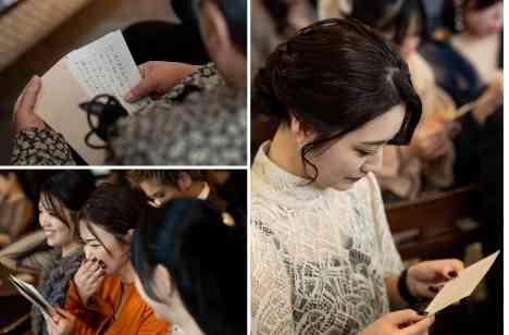 ゲストひとりひとりに用意された名前入りの封筒 受付で手にした瞬間から 「なんだろう?」と少しそわそわ でもどこか嬉しそうな表情を浮かべるゲストの皆様。 中に綴られていたのは おふたりからゲストへ宛てたメッセージレター。 そこにはゲストを大切に思う想いがまっすぐな言葉で綴られていました。 空気がふわっとあたたかくなるような おふたりの想いがゲストの心に そっと届くお時間です。