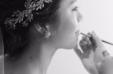 パーティースタイルは、ナチュラルに。 ご新婦様の挙式とは異なるふんわりエアリーなヘアスタイル、そして、お二人らしい柔らかく温かみのあるカラーのお小物が カスミソウに包まれたロマンティックな空間をさらに華やかに彩ります。