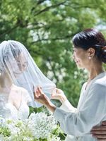 ご家族との絆を大切にしたいお二人にはベールダウンセレモニーがおすすめ。ご入場後、お母様と向かい合い、お母様には子育てに幕を下ろし幸せになってほしいという願いこめてベールを下ろしていただきます。花嫁様の最後のご準備をお母様に整えていただいた後は、バージンロードをお父様と腕を組み歩んで下さい。