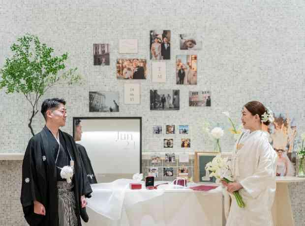 お二人が選んだチャペル「rin」は檜の香りに包まれるアットホームなデザイナーズチャペル。挙式の前はお二人きりでチャペルの中でファーストミートも。当日はお二人の想い出の曲をボーカリストやバイオリニストが演奏する中で、アットホームに挙式が進んでいきました。ゲストからも「ホテルなのにチャペルがとにかく素敵! 」という嬉しいお声をいただくことができました。