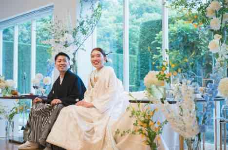 お洒落でセンスが光るお二人がこだわった会場コーディネート。6月の結婚式ということで初夏の鮮やかな緑をふんだんに取り入れた空間に。お色直しは和装に洋髪を合わせた和モダンな雰囲気に。全身がしっかりと見えるようにソファのメインテーブルにしてゲストと沢山お写真を残しました。「ふたりらしいね」との声を沢山ゲストからいただきました。