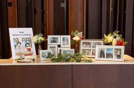 受付にウェルカムスペースを飾る式場が多いが、受付でウェルカムスペースを見れる時間がせいぜい20~30分が限度。当館は披露宴会場の入り口であるリビングルームに飾るので、お二人が時間をかけて準備したウェルカムスペースをゲストにゆっくりご覧いただけます。また貸切感のある邸宅のため、お二人のゲストしか見ないので、個性を存分に出して自分たちらしい空間に仕上げれます