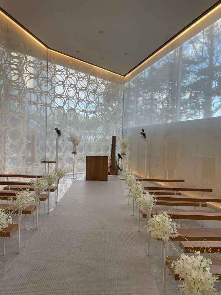 木をふんだんに使用した式場で自然を多く感じられ、とても雰囲気が良かったです。またゆったりとした時間が流れいるような雰囲気なのも良かったです。