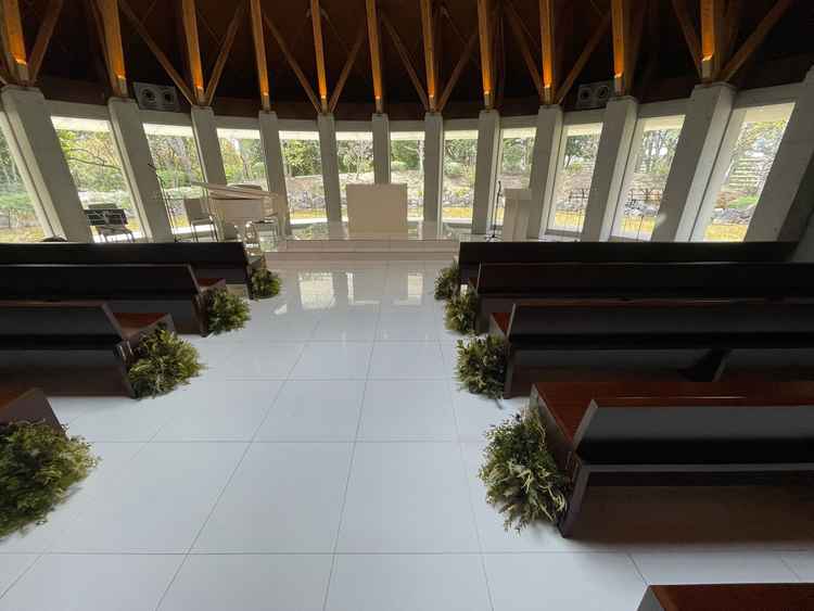 挙式会場は木が使われており雰囲気がよかったです。少人数の式の予定ですが、会場自体がすごく広い訳ではなくよかったです。