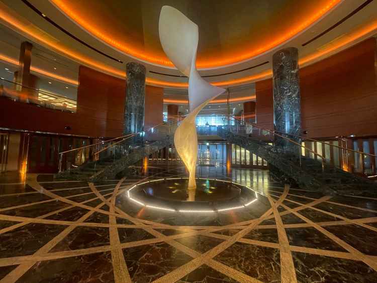 この度のご良縁、誠におめでとうございます。 また、ご貴重なお休みを頂戴し当館のブライダルフェアにお越し頂きまして ありがとうございました。 ロビーをお気に召していただき嬉しい限りでございます。 当館のロビーにあるメインオブジェ「ファウンテンコート」は 写真家兼デザイナーの方が創ったものでございますので 多くのゲストが思わず足を止めて写真を撮られます。 希望の新郎新婦様にはこの前で1stミートも行っております。 チャペル周りの水に関しては式の直前に清掃スタッフが 綺麗にしておりますので、ご安心いただけますと幸いでございます。 この度は、誠にありがとうございました。