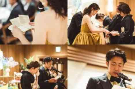 その場に参列いただいたゲスト全員が証人となる人前式おふたりの言葉で おふたりの想いを届けます”母のような笑顔と優しさで満ちた寛大な心で””父のように厳しくでも海よりも深い愛で溢れた心と母のように明るく 家族や周りの人を自分以上に大事にする心を忘れずに”どこか誇らしく胸を張って 未来へと歩み始めたおふたり