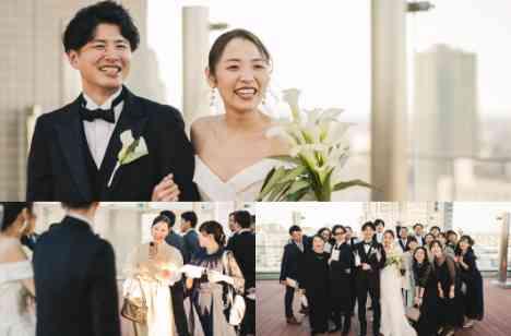 未来のおふたりとしての夫婦像を思い描きながらかけがえのないこの先もお付き合いされたいゲストに見守られおふたりが神様の前で誓い合います誓いを見届けてくれたゲストのもとへ駆け寄るおふたり最上階チャペルのそばにはフォトやアフターパーティとしてゲストと交じ合う時間に過ごせるガーデンテラスが外の風と空気を感じながら非日常な空間で”絶対に残したいんです”とおっしゃっていただいたフォトタイム