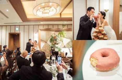 家族がリビングルームに集うようにと作られたTHE GRAND ROOMでゲストとも近い距離感で楽しむパーティの幕開けですドーナツが大好きな可愛らしい新婦様当館のパティシエ特製ドーナツタワーが登場した際にはゲストもびっくりされた様子でお二人の可愛らしいシーンを収める親族様「あーん」と掛け声をしてくださる友人様本当にアットホームな時間が流れていました
