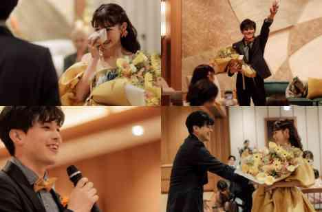 新郎様から新婦様へサプライズの映像とお花束のプレゼント新婦様に想いが届くようにと何度も何度もご相談してくださった新郎様新婦様の気持ちを想うと幸せで嬉しくてしかたなかったことを今でも覚えています動画の中にあった新郎様の真っ直ぐな気持ち「どんなことがあってもふたりでなら乗り越えられる気がするよ」「結婚してくれてありがとう」新婦様にも真っ直ぐに届きました花束の色は迷わずに新婦様が大好きな色を選びました